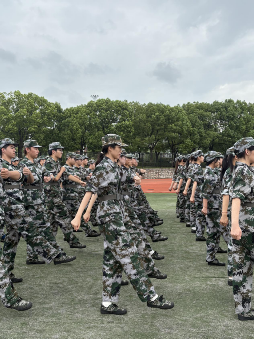 回首军训时光,新“梅”子同样以卓越的表现和坚韧的意志,书写着青春昂扬的篇章。晨曦微露,他们已整齐列队,挺直如松;烈日当空,他们仍目光如炬,步伐铿锵。从站军姿时纹丝不动的坚毅,到走方阵时排山倒海的气势;从军体拳虎虎生风的力度,到格斗演练中默契配合的团队精神——他们用汗水诠释纪律,用行动彰显担当。训练场上,番号震天、行列如刀,每一个细节都凝聚着认真与坚持,每一次挥臂与迈步都闪耀着青春与热忱。新“梅”子不仅在军训中磨砺了意志、锤炼了体魄,更在集体生活中深化了情谊,展现着梅西学子团结奋进、胸怀全局的精神风貌。那迷彩下的奋斗,是未来国际化精英成长之路上踏实而耀眼的一步。